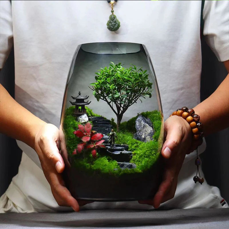 🌿 Lush Greenery and Natural Balance Carefully arranged plants, stone, and water form a living landscape inspired by untouched woodland paths.